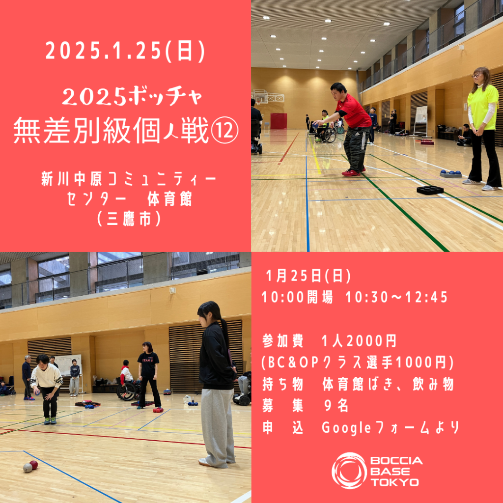 ☆参加者募集☆「2025ボッチャ無差別級個人戦⑪(12/20)、⑫(1/25)」