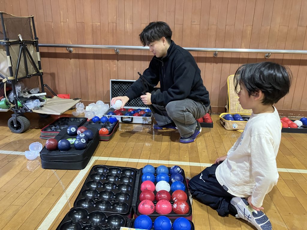 また、今回はボッチャ団体「玉友会」の代々城さんがたくさんのボールやロールテストキットなどを持ってきてくれました。