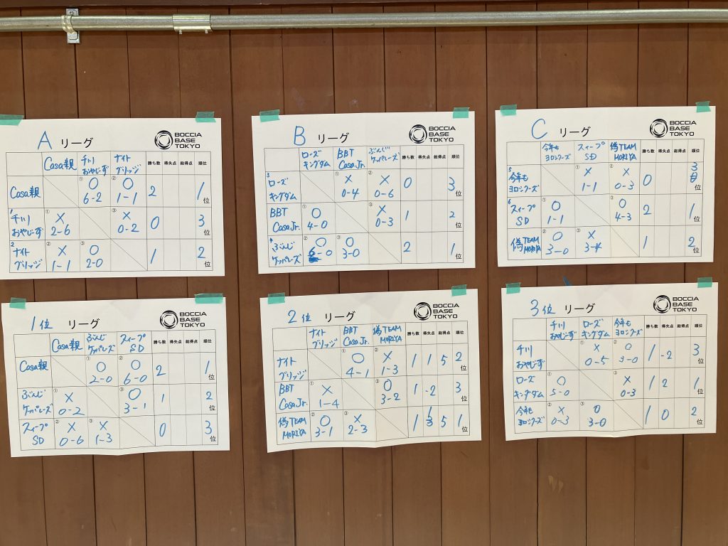 後半は前半リーグの結果によってリーグ分けを行いました。